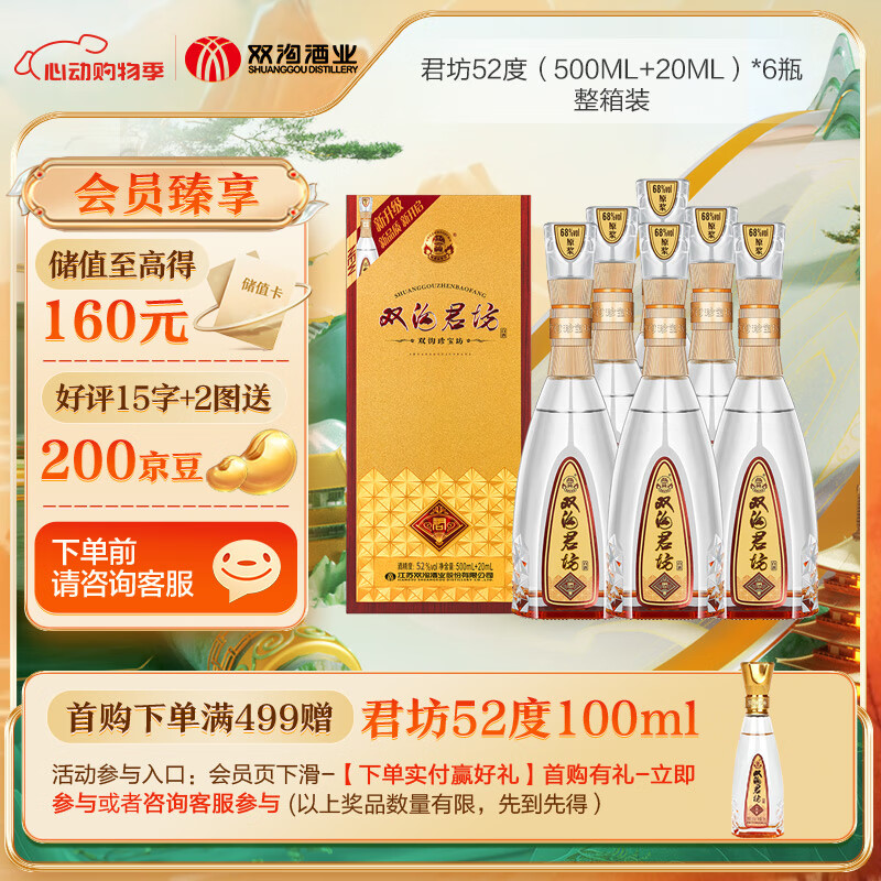 双沟 珍宝坊君坊 52度 (500ml+20ml)*6瓶 整箱装 浓香型白酒价格:608.00元!