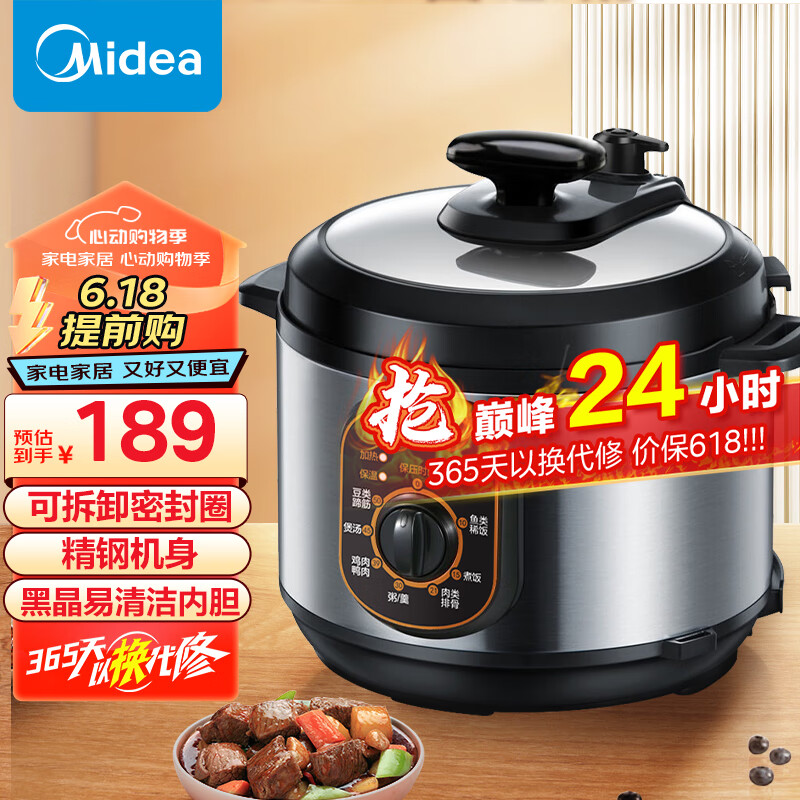 美的(Midea)智能电锅4L家用多功能 易清洁内胆 开盖火锅 七大烹饪模式 高压锅W12PCH402E(2-8人食用)价格:189.00元!