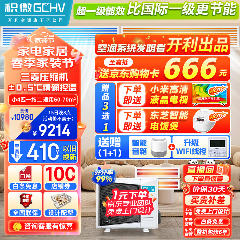 GCHV积微中央空调多联机 小4匹一拖二 直流变频冷暖嵌入式风管机空调 适用一室一厅 EC系列价格:9980.00元!