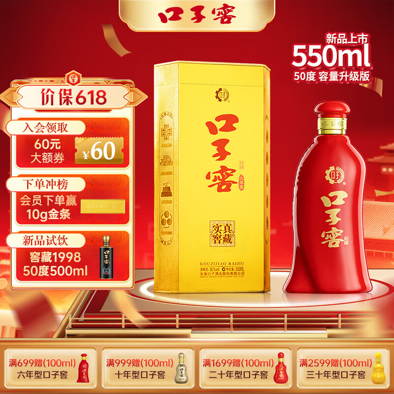 口子窖 六年型 兼香型白酒 50度 550ml 【容量升级】纯粮酿造价格:185.00元!
