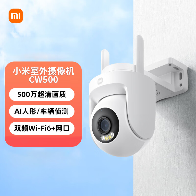 小米室外摄像机CW500 家用监控 双频Wi-Fi6 超清全彩夜视 AI人形/车辆侦测 防尘防水摄像头价格:334.00元!