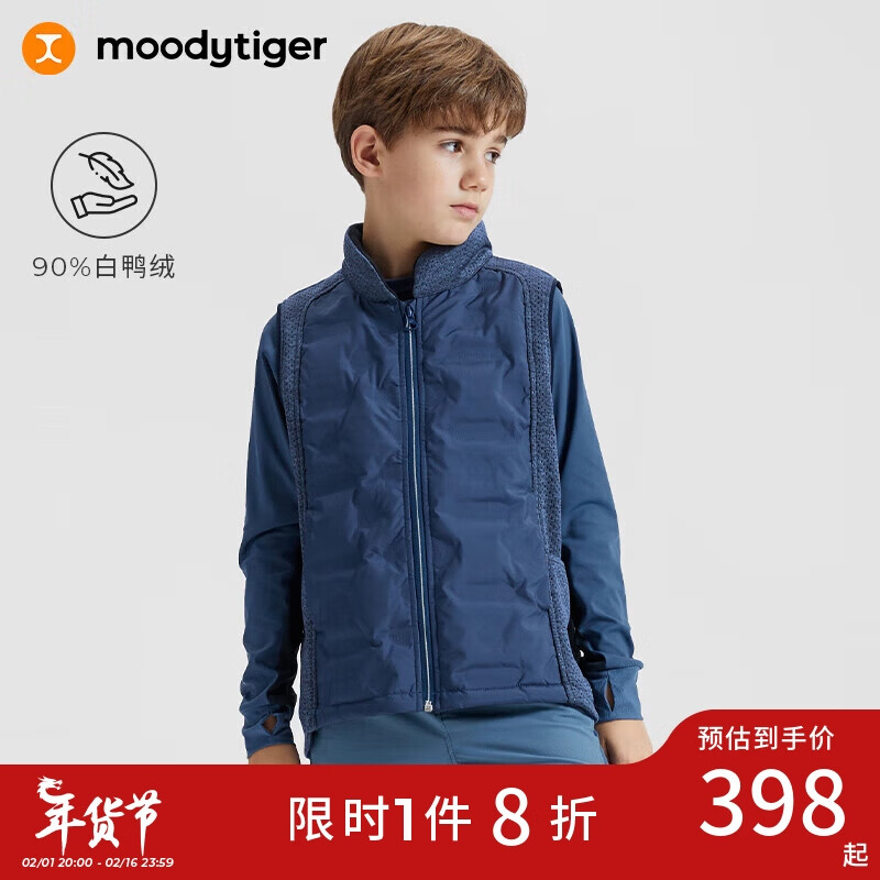 moodytiger儿童羽绒马甲23年秋冬季轻薄款男女童中性外穿羽绒背心价格:498.00元!