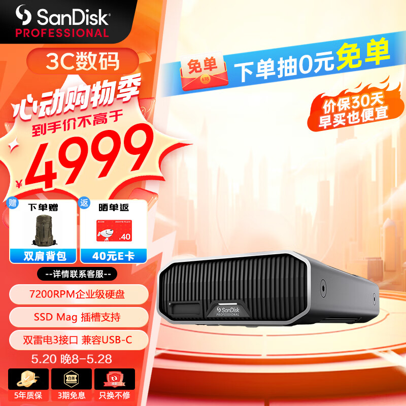 闪迪大师极客 致捷12TB 企业级桌面移动硬盘机械硬盘雷电3兼容USB Type-C 3.5英寸大容量读写速度250MB/S价格:5399.00元!
