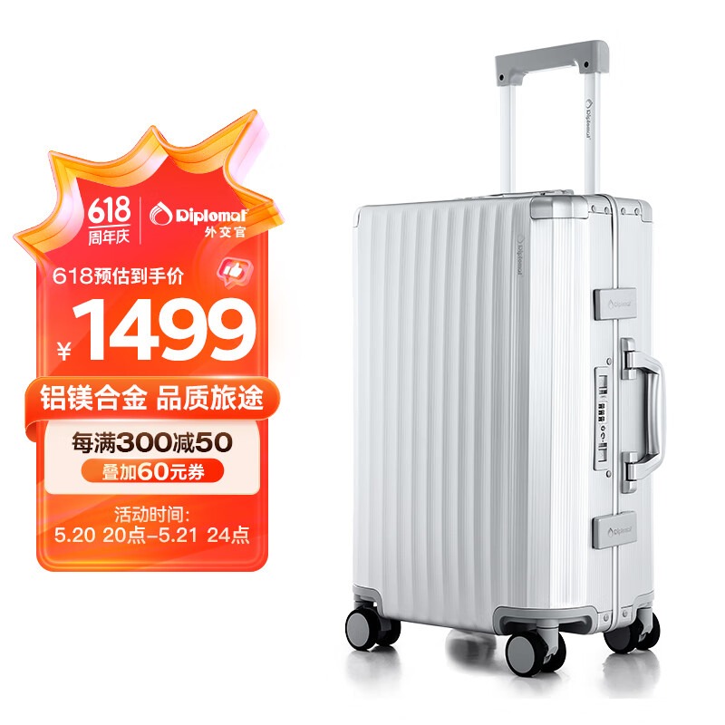 Diplomat外交官行李箱时尚镁铝合金铝框男女旅行拉杆箱TL-25052银色20英寸价格:1809.00元!