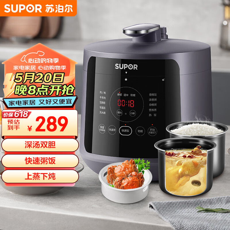 苏泊尔(SUPOR)深汤系列电锅5L家用全自动智能预约配蒸笼开盖火锅触控面板SY-50YC8011双胆电饭煲高压锅3-6人价格:289.00元!