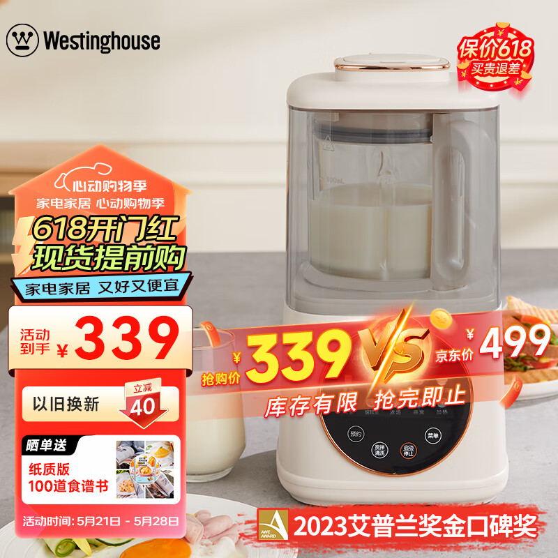 西屋(Westinghouse)柔音破壁机家用豆浆机加热全自动榨汁机搅拌机降噪辅食机 WPB09J7杏仁白价格:339.00元!