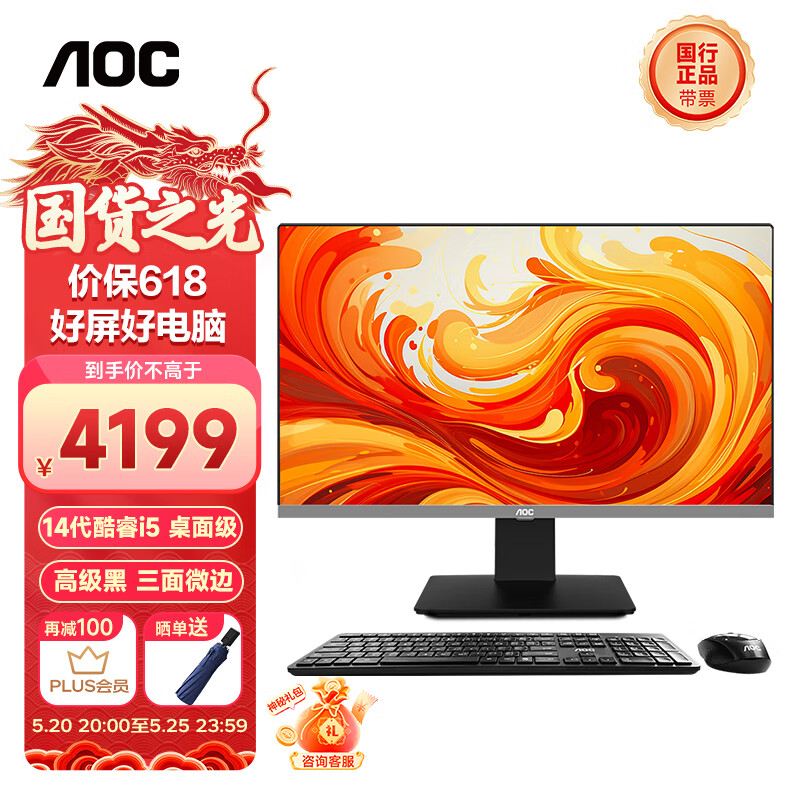 AOC 大师926 23.8英寸高清办公一体机电脑台式主机(14代i5-14400 16G 512GSSD 双频WiFi ) 黑价格:4199.00元!