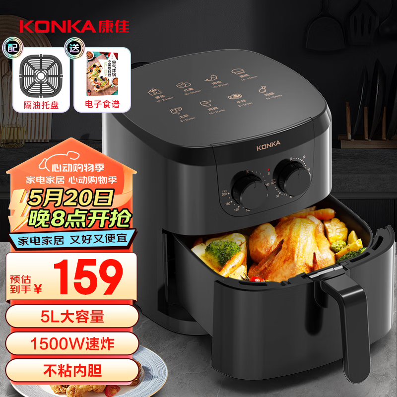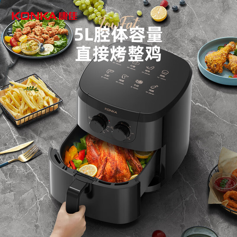 康佳(KONKA)空气炸锅5L 家用多功能无油电炸锅 低脂少油 耐磨不粘易清洁 KKZG-5012-W价格:159.00元!