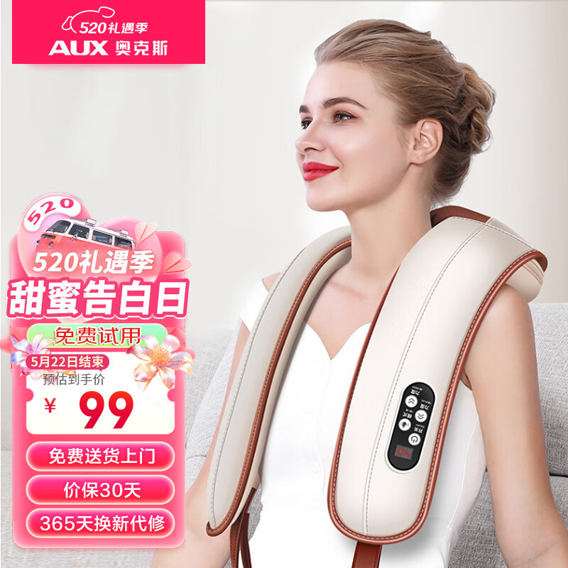 奥克斯(AUX)颈椎按摩器肩颈按摩披肩BR-ZP9双S曲线 颈部肩部按摩腰部背部揉捏按摩仪 520 情人节 礼物 生日价格:119.00元!