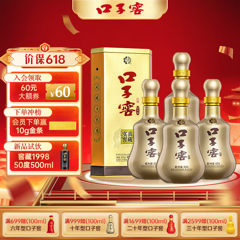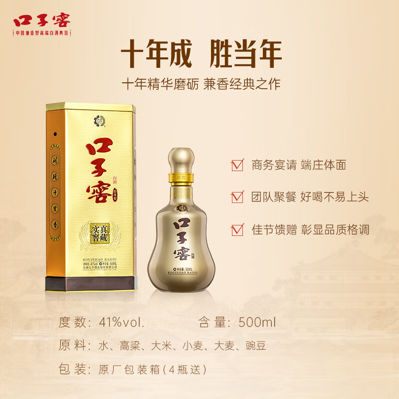 口子窖 十年型 兼香型白酒 41度 500ml*4瓶整箱装 口子酒 送礼宴请价格:1317.00元!
