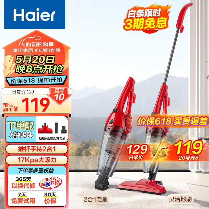 海尔(haier)吸尘器家用有线立式手持推杆二合一 强劲吸力低噪 轻量 小型车载猫毛地毯家庭适用 C2160R价格:118.90元!