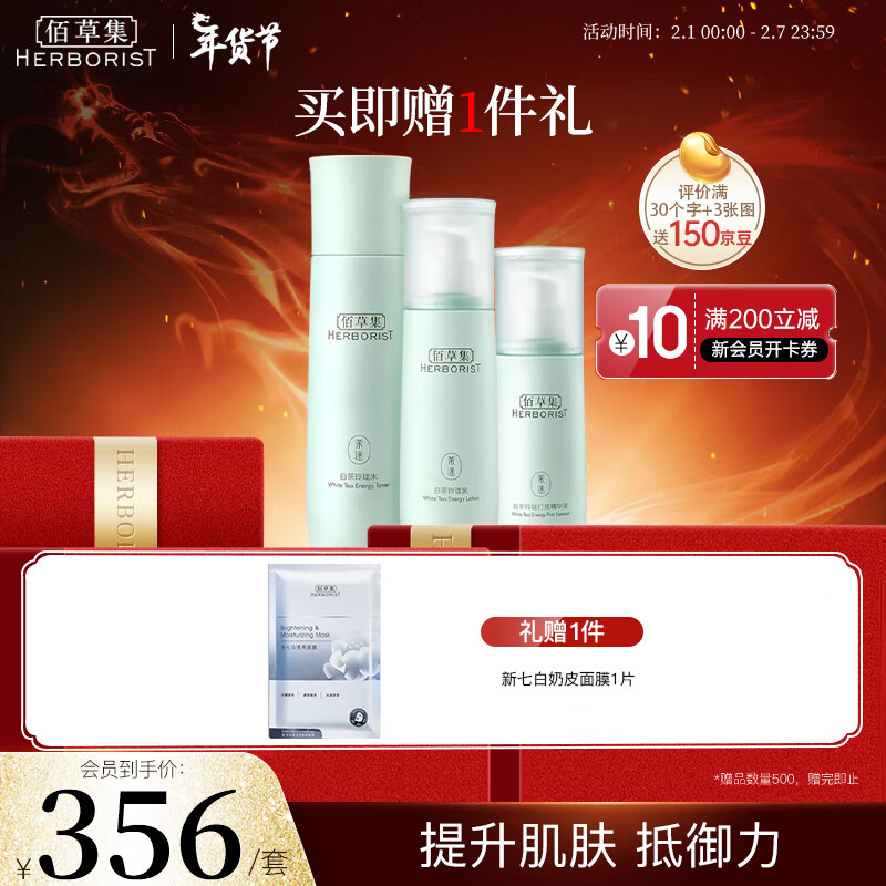 佰草集【白茶玲珑】护肤套装(水150ml+乳100ml+精华液80ml)保湿抗氧提亮价格:374.00元!