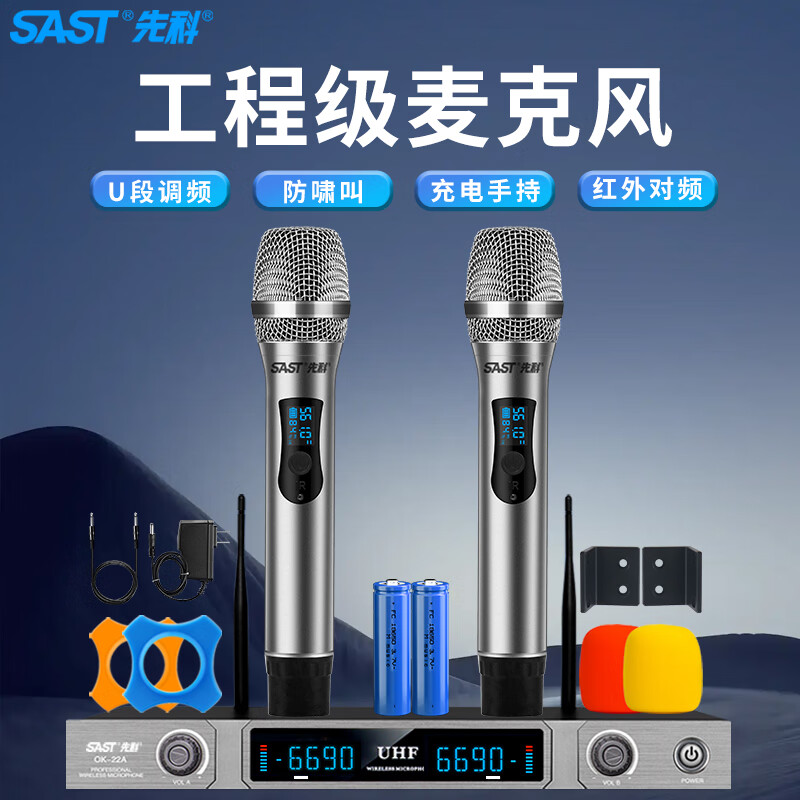 先科(SAST)OK-22 无线话筒 一拖二 U段可调频 无线麦克风专业K歌麦克风家庭KTV演唱会议主持专业话筒价格:599.00元!