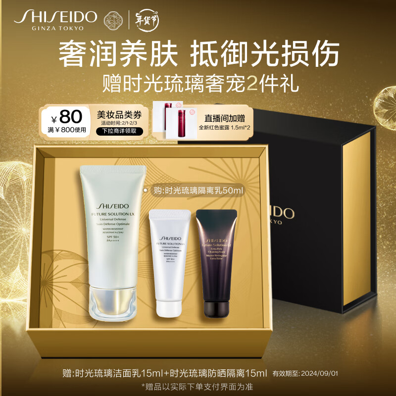 资生堂(SHISEIDO)时光琉璃防晒隔离乳SPF50+ PA++++清透防护紫外线 生日礼物价格:680.00元!