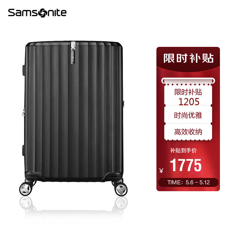 新秀丽(Samsonite)行李箱时尚竖条纹拉杆箱旅行箱黑色25英寸托运箱GU9*09002价格:1775.00元!