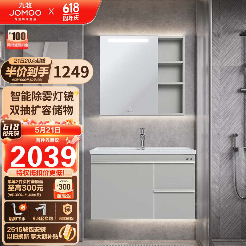 九牧(JOMOO)极简美妆智能镜浴室柜陶瓷一体洗脸盆柜组合80cm A2704-117Y-3价格:2649.00元!
