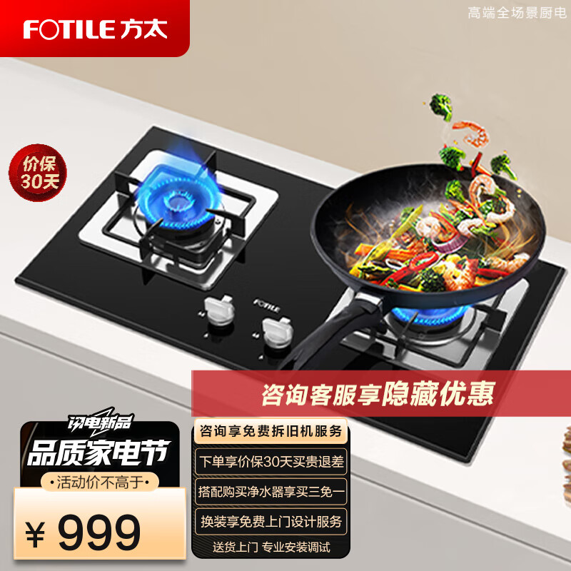 方太(FOTILE)燃气灶煤气炉嵌入式双眼4.2KW灶具TH33B(天然气) 天然气价格:999.00元!
