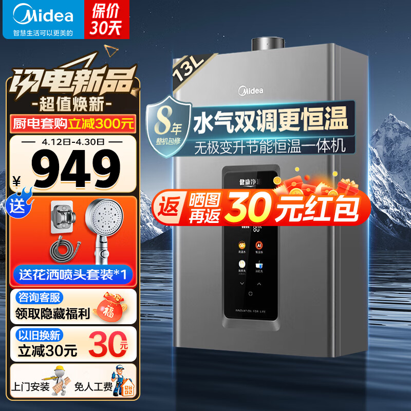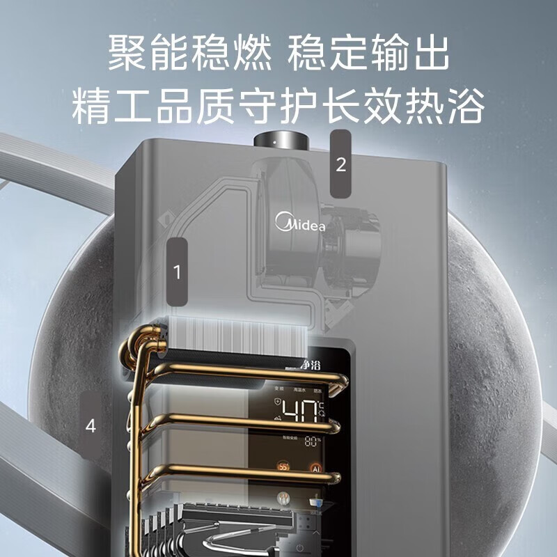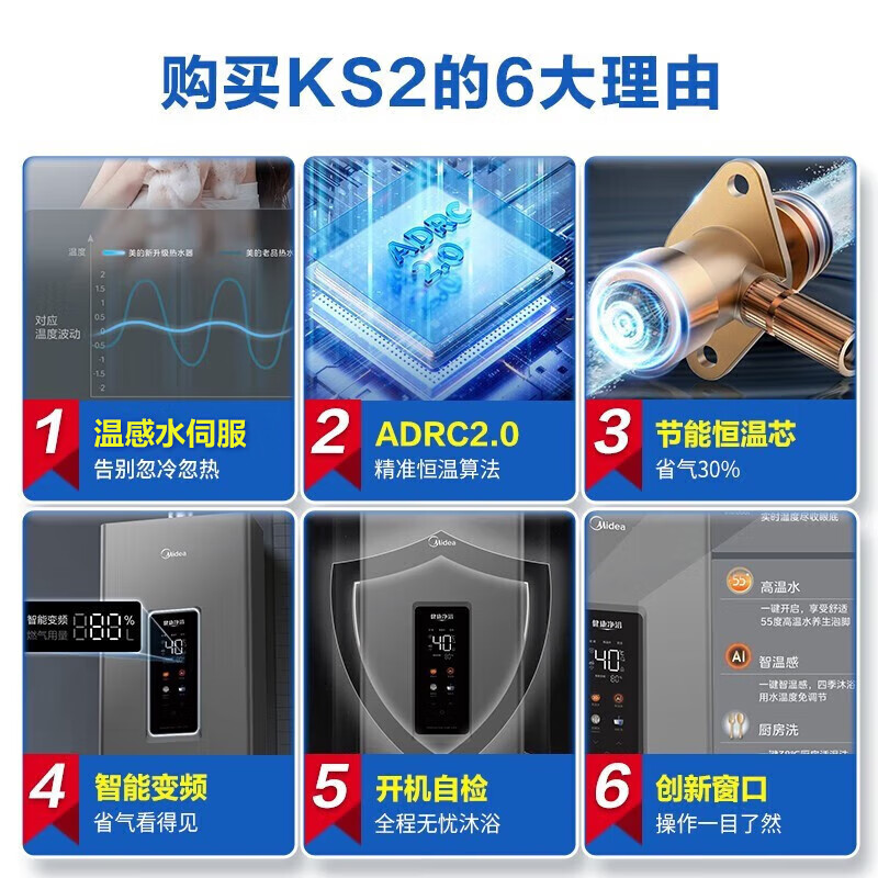 美的(Midea)燃气热水器温感水伺服变频节能五重过滤净化水质WIFI智控 家用强排式智能恒温热水器JSQ25-KS2价格:949.00元!