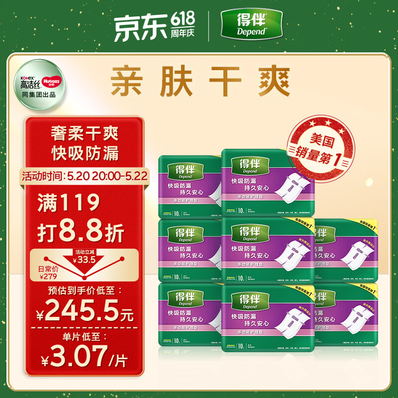 得伴Depend护理垫80片 60cm*90cm 加厚护理垫隔尿垫大号漏尿防漏垫价格:279.00元!