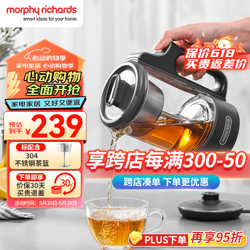 摩飞电器(Morphyrichards)养生壶 便携迷你煮茶器 烧水壶热水壶 小型办公室家用多功能喷淋式蒸汽煮茶壶 MR6082 太空灰价格:319.00元!