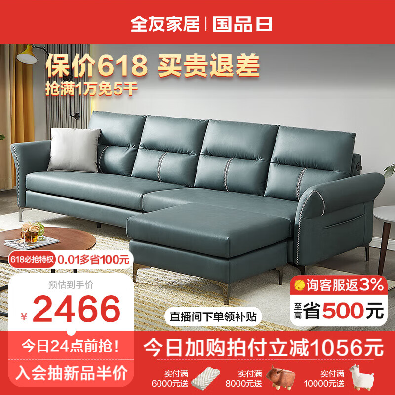 不得不说的是全友沙发外观我比较的喜欢,质量特别的好,物流速度快,商品包装完好无损。