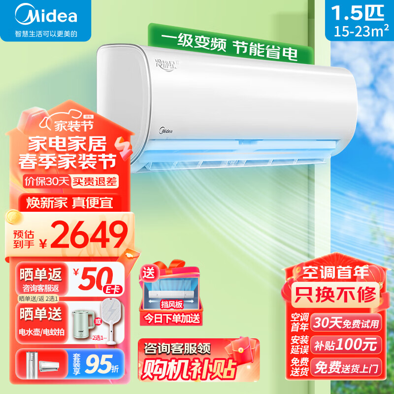 美的(Midea)冷静星二代 空调挂机1.5匹新一级能效智能全直流变频防直吹壁挂式空调 KFR-35GW/BDN8Y-PH200(1)A价格:2649.00元!