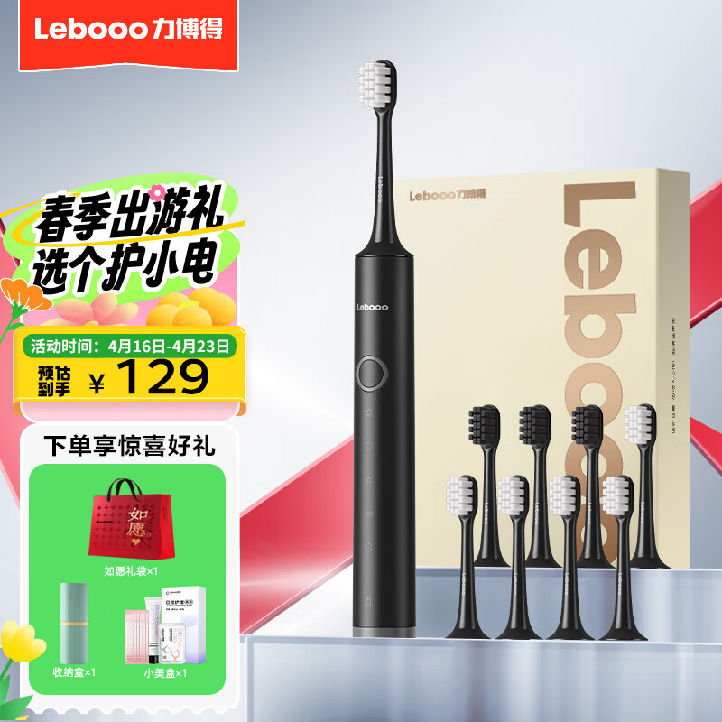 力博得(Lebooo)声波电动牙刷成人情侣家用节日生日礼物送男友送女友礼赠礼盒装 悦心2024款 8刷头(耀黑色)价格:129.00元!