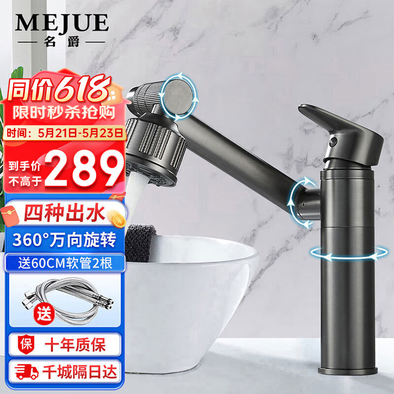 名爵(MEJUE)浴室柜洗脸盆水龙头枪灰色卫生间可旋转冷热水万向龙头Z-012402价格:299.00元!