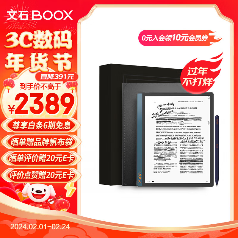 BOOX文石 NoteX2 礼盒版 10.3英寸电子书阅读器 墨水屏电纸书电子纸 办公学习平板 语音转文字 4+64G价格:2389.00元!
