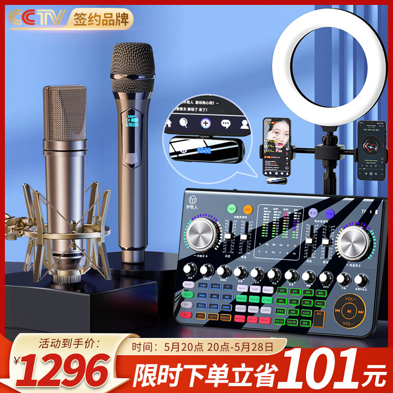 好牧人声卡直播设备全套装无线麦克风蓝牙手机话筒唱歌吧K歌娱乐快手抖音主播变声器户外降噪电脑麦克风价格:1398.00元!