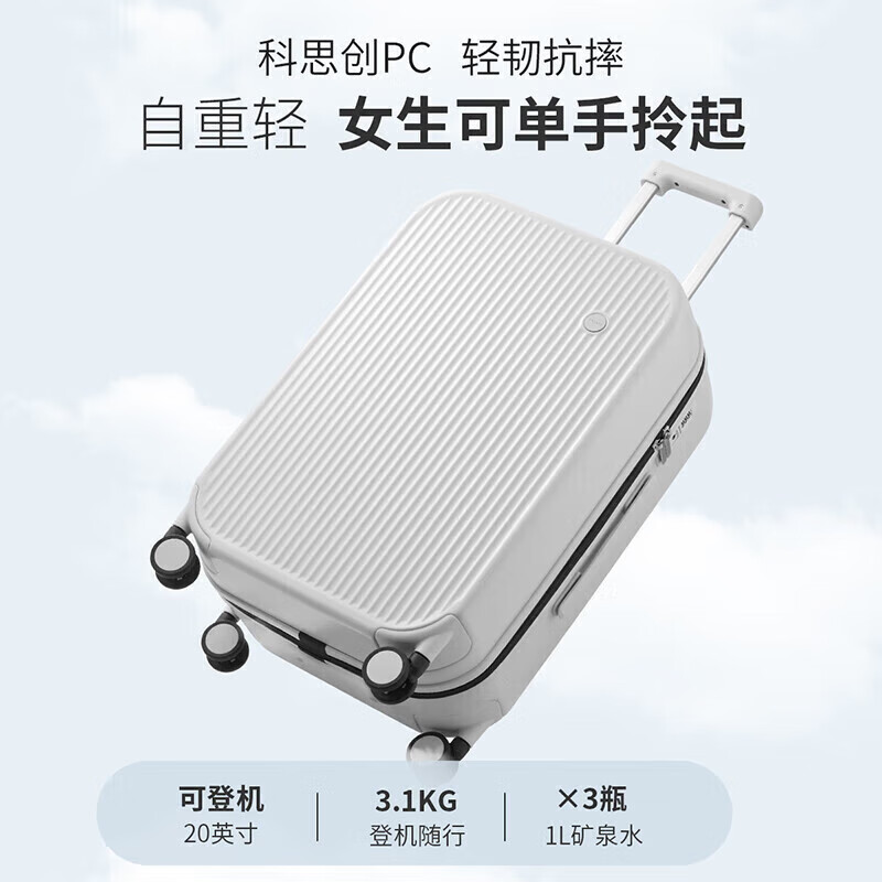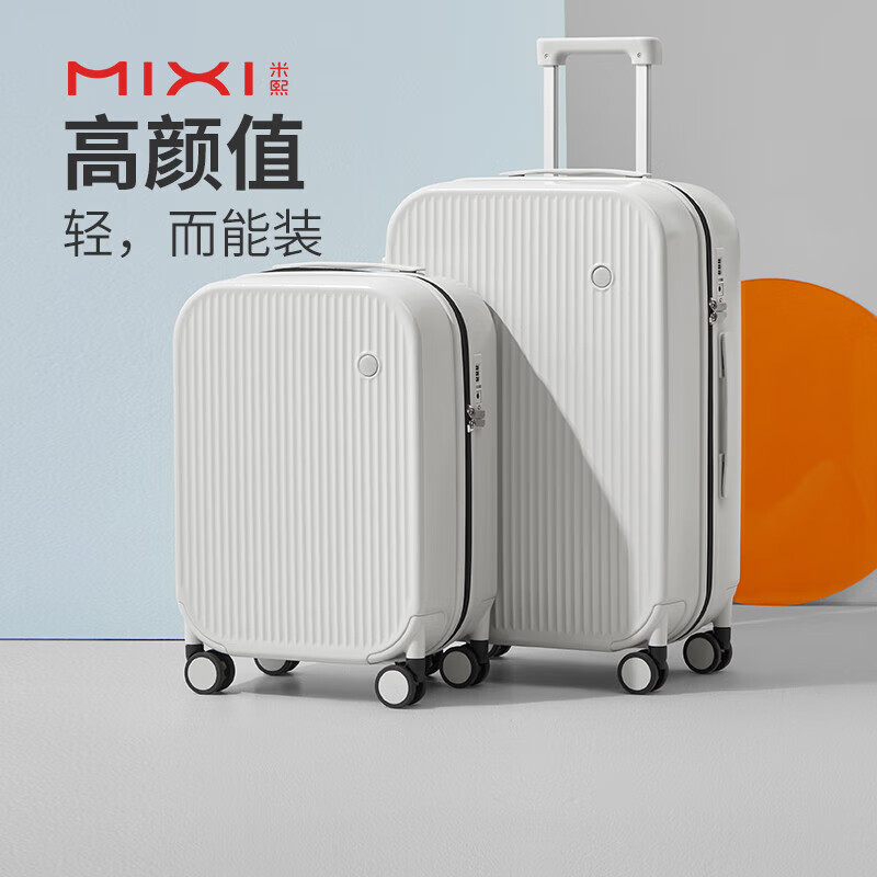 米熙行李箱女拉杆箱旅行箱子密码箱潮流设计登机箱拉杆箱20英寸烟白73价格:389.00元!