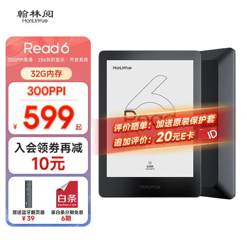 翰林阅Read6电子书阅读器6英寸32G内存300PPI墨水屏电纸书阅览器开放系统 深空黑价格:599.00元!