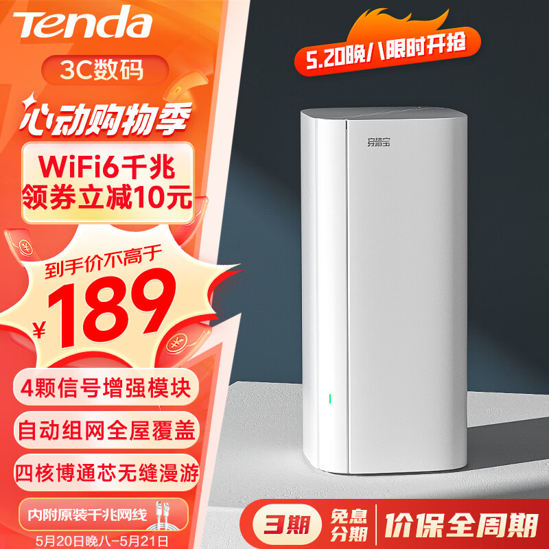 Tenda腾达 AX3000千兆WiFi6路由器 5G双频 家用智能穿墙路由 一键Mesh组网 EM12单只装价格:239.00元!