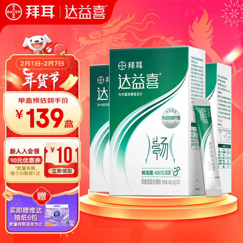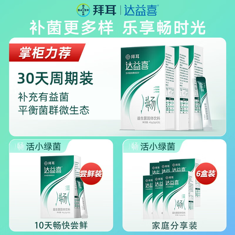 达益喜拜耳出品益生菌成人肠胃4000亿活菌调理小绿菌畅肠道虚弱肠胃益生元益生菌粉拜耳出品 20袋*3盒价格:597.00元!