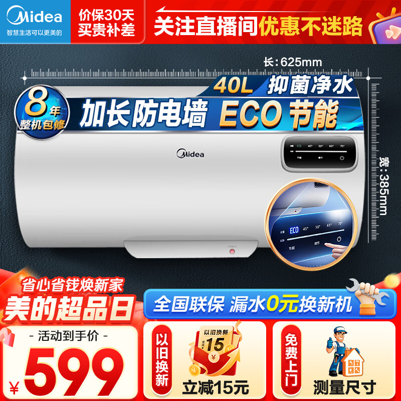 美的(Midea)储水式电热水器电家用多升数可选经济适用防护速热电热水器机械升级数显款X0 40L 2000W 【适用1-2人】数显价格:899.00元!