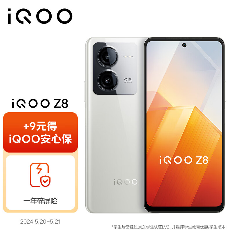 vivo【iQOO安心保-一年碎屏保】iQOO Z8 12GB+256GB 月瓷白 天玑 8200 120W超快闪充 5G手机价格:1808.00元!