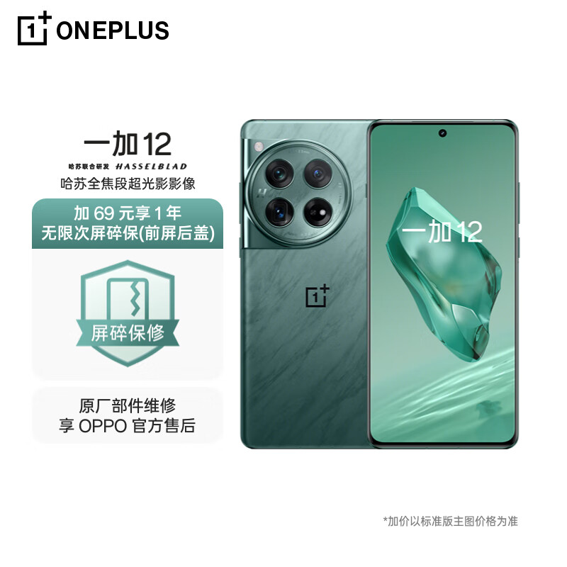 一加 12 16GB+1TB 苍绿 哈苏全焦段超光影影像 2K 东方屏 OPPO 5G游戏旗舰手机【1年无限次屏碎保】价格:5368.00元!