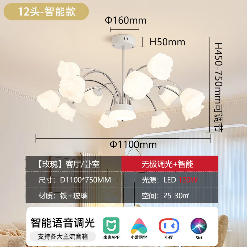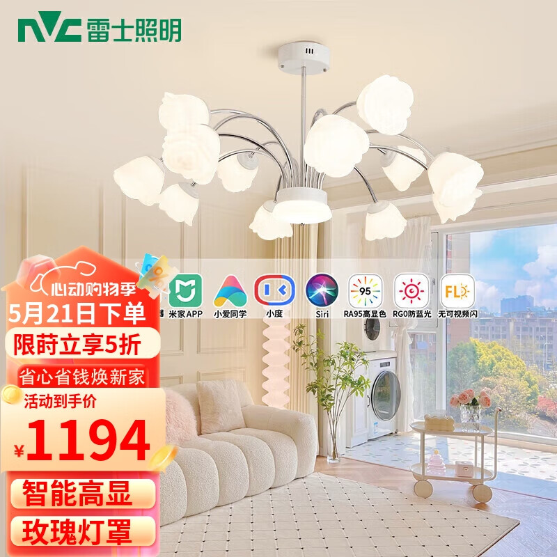 雷士(NVC)奶油法式浪漫花玫瑰灯罩客厅灯智能舒适光12头吊灯WHDD120F/G-13价格:2788.00元!