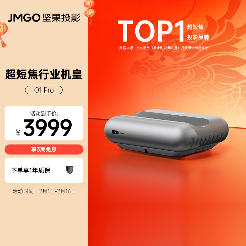 坚果投影O1 Pro旗舰超短焦投影仪家用高亮 智能家庭影院白天可看( 丹拿调音 激光电视平替)价格:3999.00元!