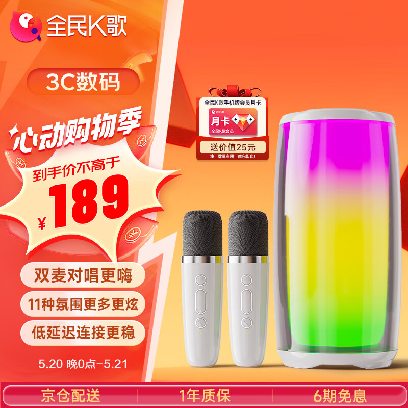 K歌 MZ21蓝牙音箱麦克风套装 直播电视K歌手机无线k歌家庭ktv 户外大音量广场舞音响 月光白双麦套装价格:189.00元!