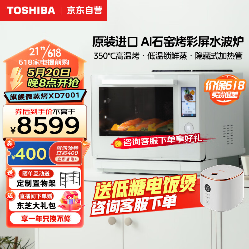 东芝(TOSHIBA)ER-XD7001CNW进口水波炉微蒸烤炸一体机变频微波炉家用蒸烤箱空气炸AI彩屏自动石窑烤30L 白色价格:8999.00元!