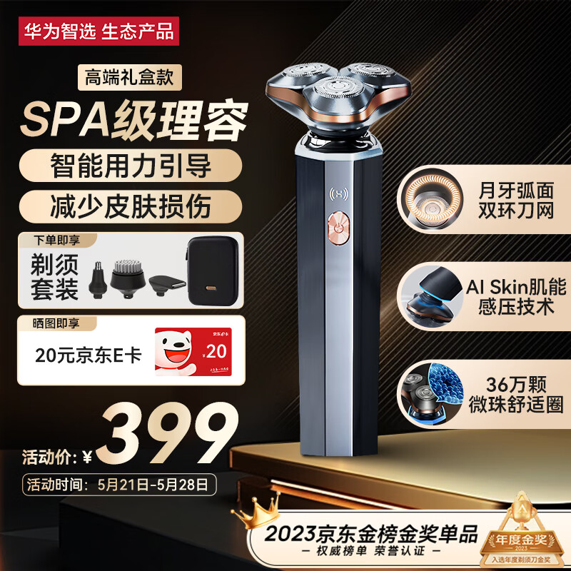 华为智选小适智能电动剃须刀旋转式干湿双剔水洗电动刮胡刀生日礼物送男友送老公送父亲520礼物情人节礼物价格:395.50元!