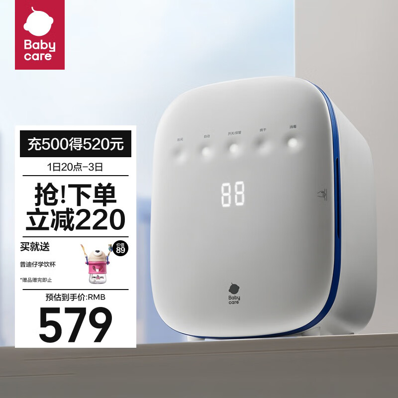 babycare婴儿奶瓶消毒锅带烘干一体紫外线多功能消毒器宝宝专用辛德白价格:799.00元!