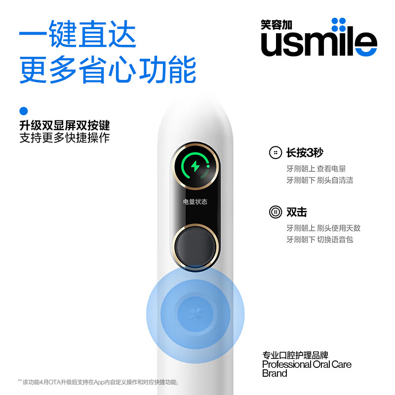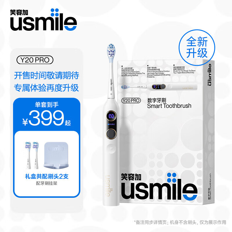 usmile 笑容加电动牙刷 成人声波震动电动牙刷 情侣款送男友/送女友 Y20PRO水白色价格:529.00元!