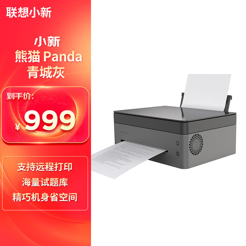 联想小新熊猫Panda打印机 学生家用办公商用 黑白激光高速打印/云打印/扫描/复印一体机可连接笔记本 青城灰价格:999.00元!