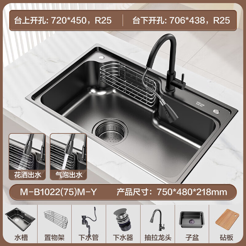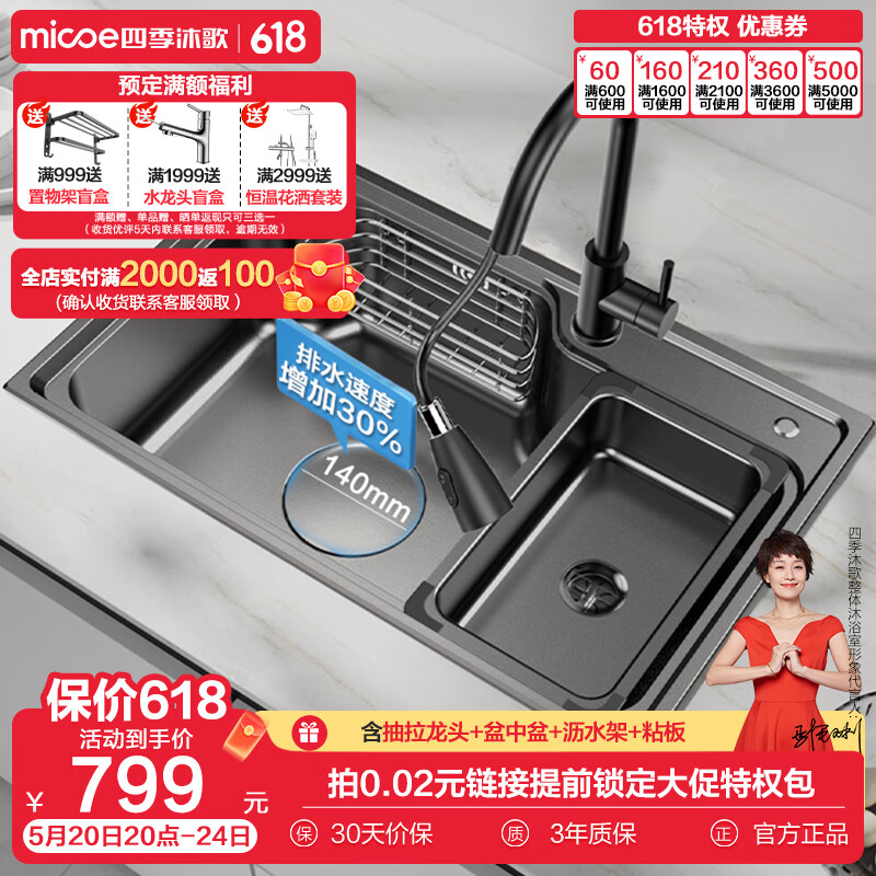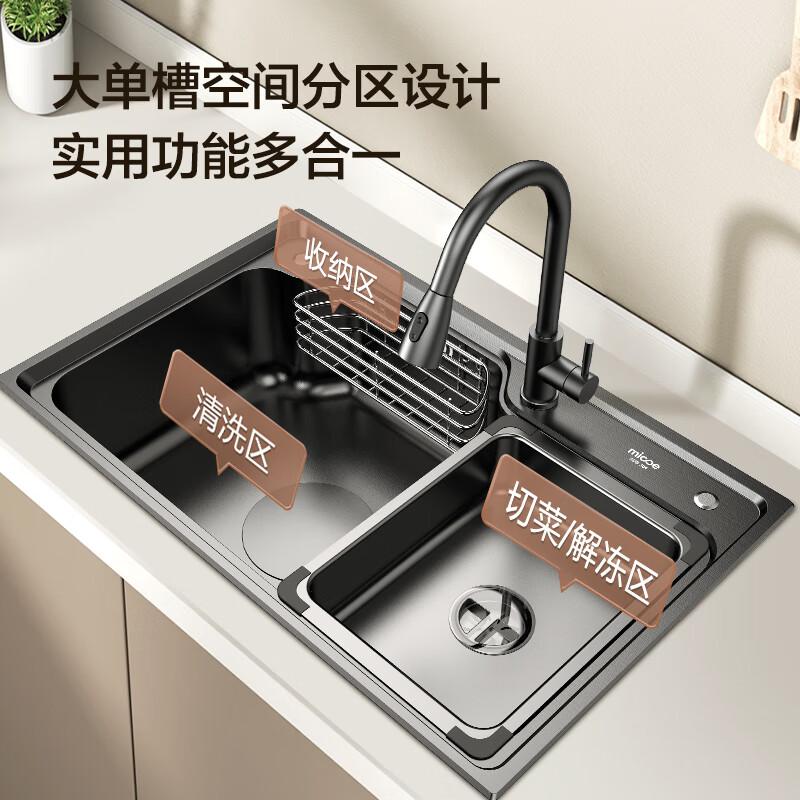 四季沐歌(MICOE)厨房水槽304不锈钢单槽多功能大容量洗菜盆水龙头台下盆价格:1099.00元!