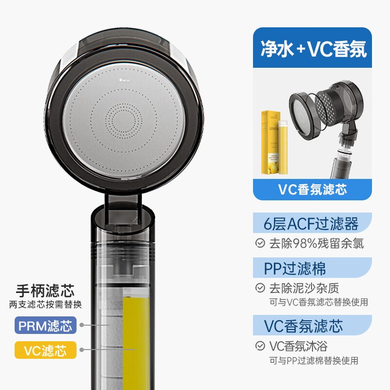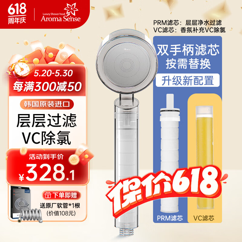 Aroma Sense淋浴花洒喷头增压韩国进口活性碳过滤除氯净水加压手持莲蓬头 PR9000白标配+VC滤芯1价格:398.00元!