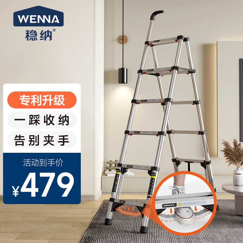 稳纳 伸缩梯家用折叠多功能人字梯升降登高楼梯六步工程梯子6306D价格:479.00元!