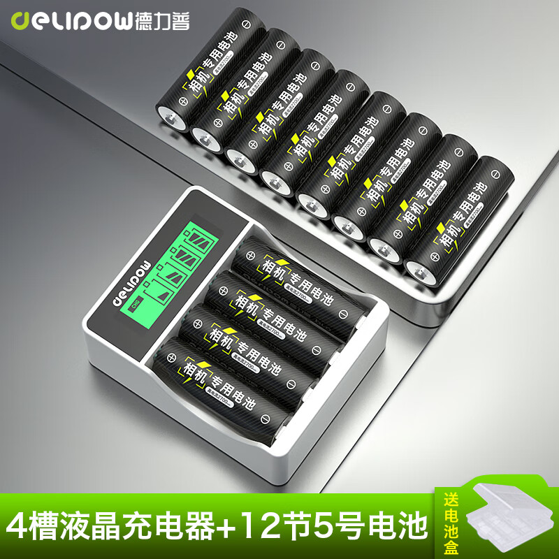 德力普(Delipow)充电电池 5号电池大容量2700mAh配充电器套装 KTV话筒/单反相机闪光灯专用价格:154.50元!