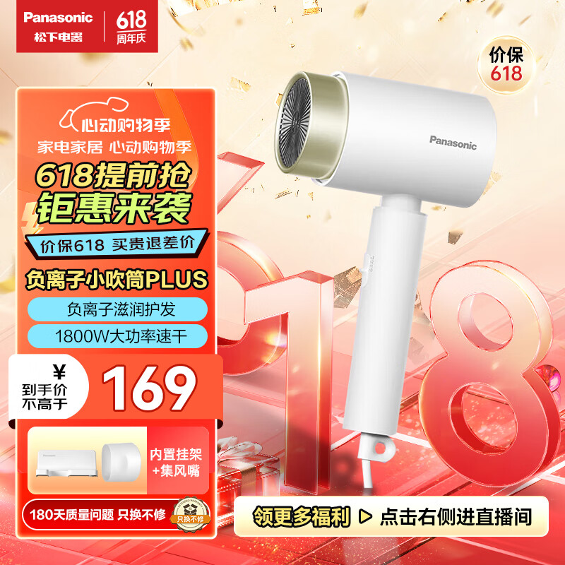 松下(Panasonic)电吹风机大功率大风力速干负离子家用吹发宿舍电吹风筒EH-WNE5K 白色风嘴加防尘袋价格:169.00元!
